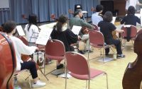 弦分奏では、合奏に向けての準備というだけでなく、弦楽アンサンブルのような美しさを目指して、コンミスを中心に楽しく(時に厳しく)練習に励んでいます。